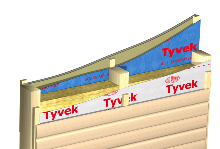 Для максимального комфорта рекомендован Tyvek® Solid на внешней поверхности утеплителя стен и кровель, а AirGuard® SD 5 на внутренней поверхности.